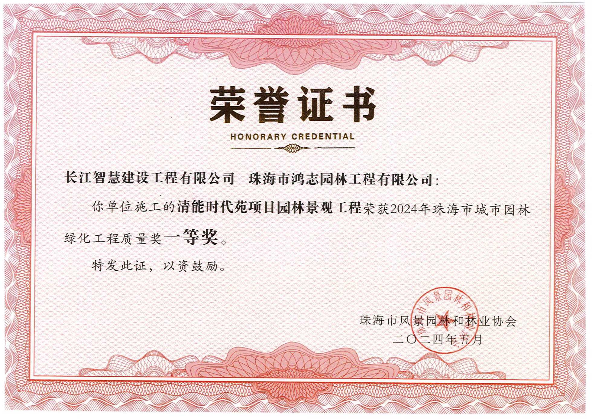 珠海市城市園林綠化工程質量獎一等獎